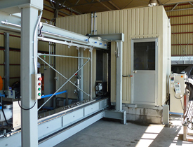 6軸防水型多関節ロボット( 3種類より選択可)により高圧回転ガン(ロータリーガン)を保持しポテンシャルの高い最適設備で、大型構造物洗浄ができます。